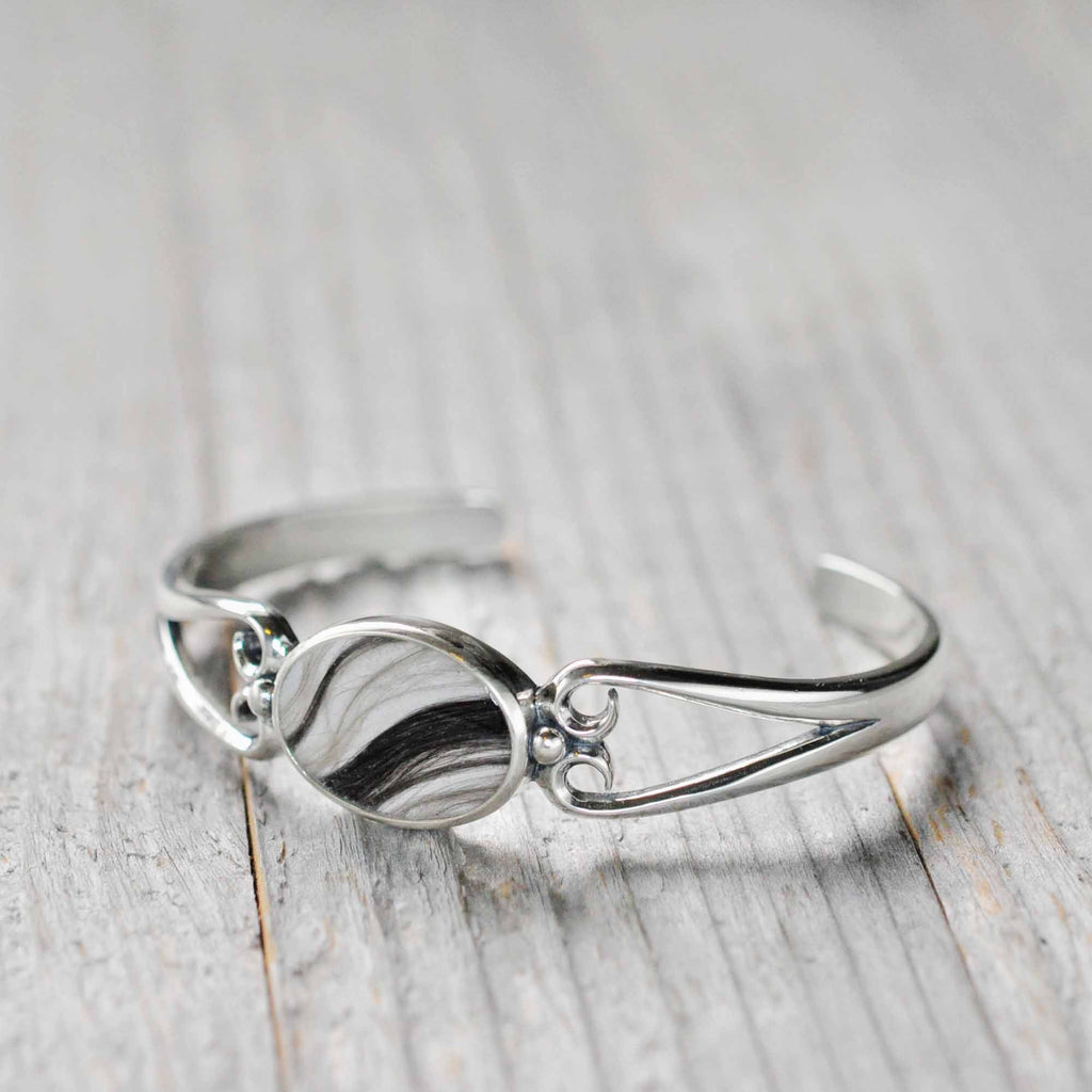 Capture and treasure your pet's unique beauty forever with the Sterling Olwen Pet Hair Bracelet! Handcrafted with love, this bracelet is crafted with resin to protect and preserve your beloved pup or kitty's fur in a stunning cuff. Wear your precious pet close to your heart and keep them with you always.