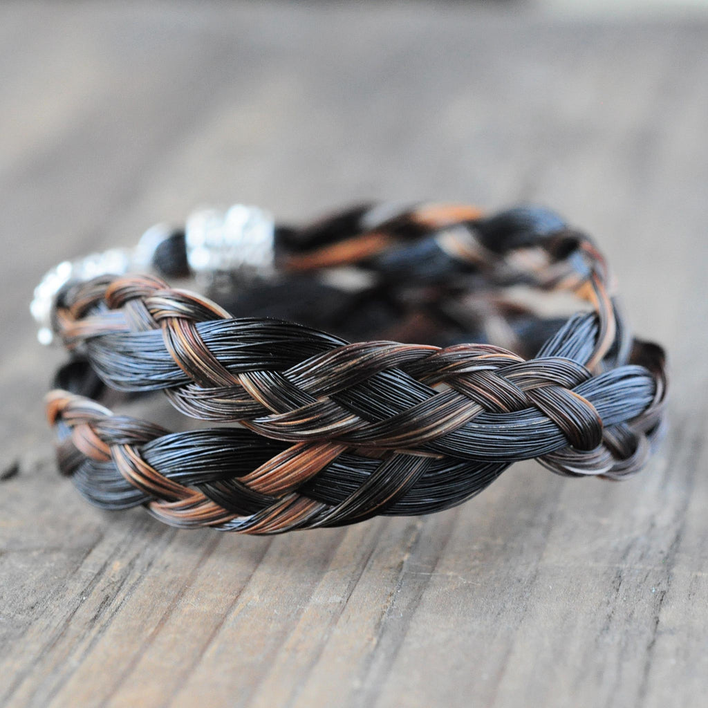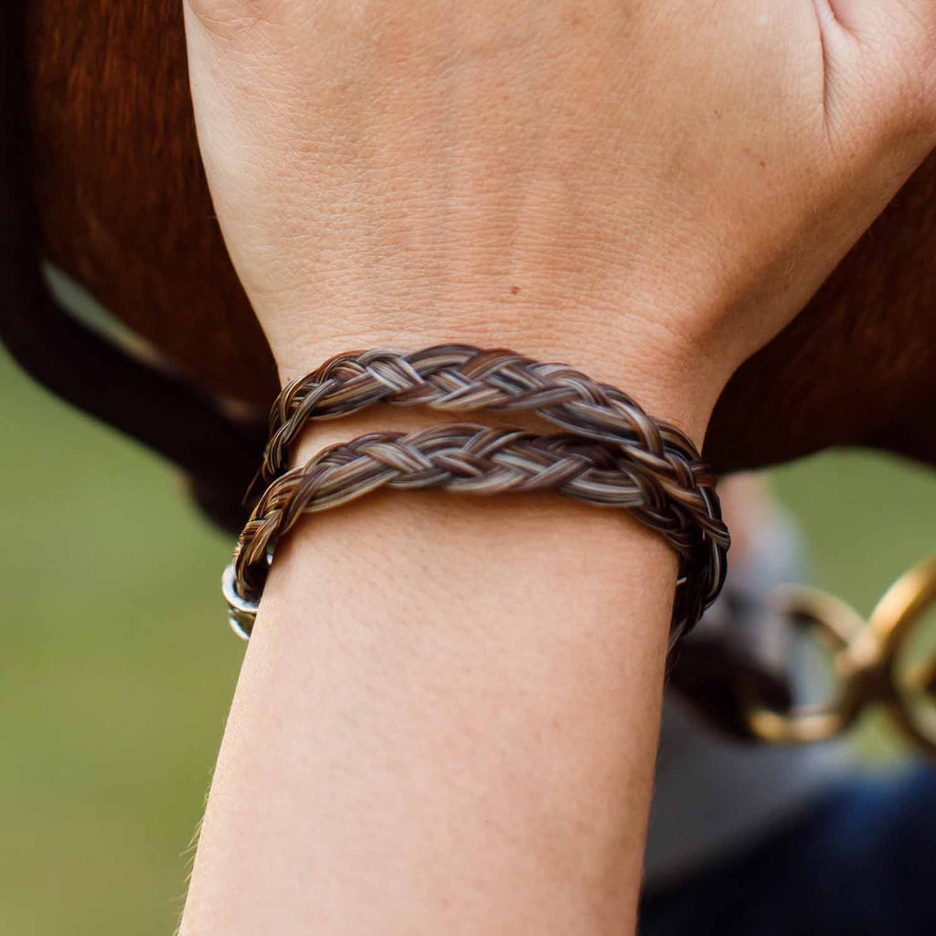Long enough to wrap around your wrist twice, this beautifully bold, boho horse hair bracelet is a perfect way to show your horse's (or horses!) gorgeous natural color variations.