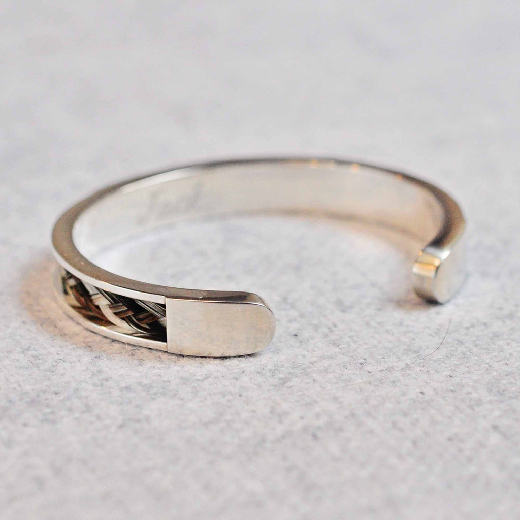 Unlike traditional horse hair bracelets, your horse's hair is expertly woven into our exclusive smooth flat braid and set into the heavy weight sterling silver cuff bracelet to preserve your horse's hair through the years.