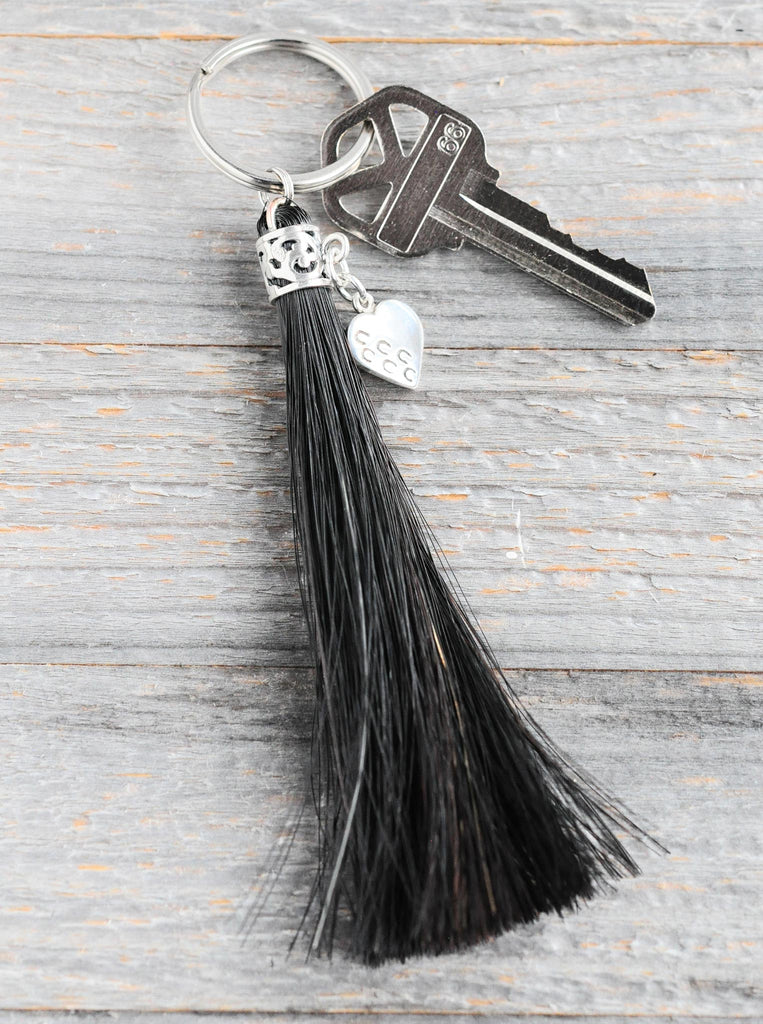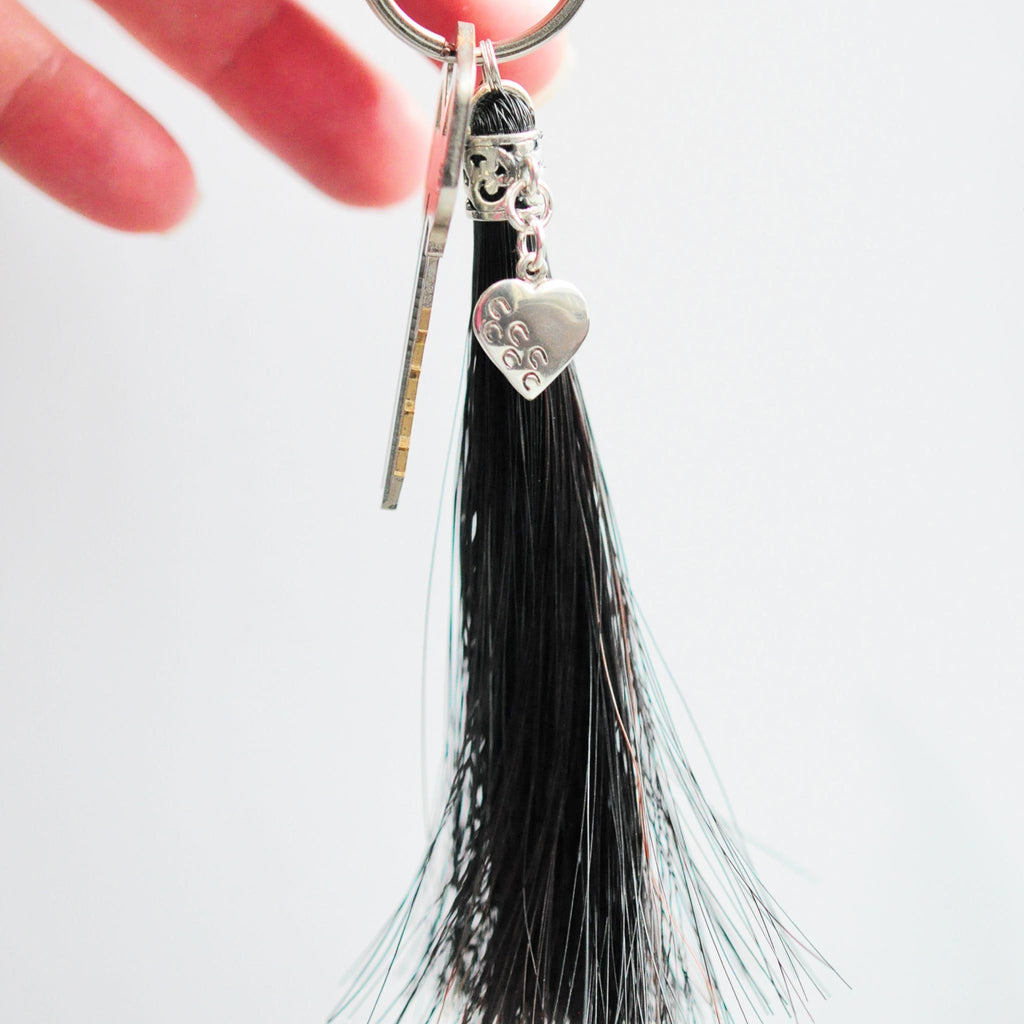 Sterling Tassel Horse Hair Keychain with Hoofprint Charm